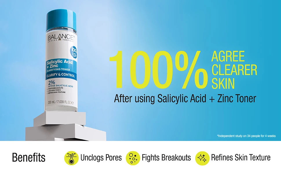 Keep breakouts under control and achieve a clearer, more balanced complexion with the Balance Active Formula Salicylic Acid + Zinc Clarifying Toner. This refreshing toner helps to unclog pores, reduce excess oil, and calm blemish-prone skin — revealing a smoother, more refined texture without stripping away natural moisture.