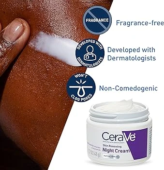 CeraVe Skin Renewing Night Cream is specially formulated to support skin barrier restoration while you sleep. Enriched with hyaluronic acid, niacinamide, and essential ceramides, it deeply hydrates, soothes, and helps improve skin texture, leaving your skin soft, smooth, and healthy-looking by morning.