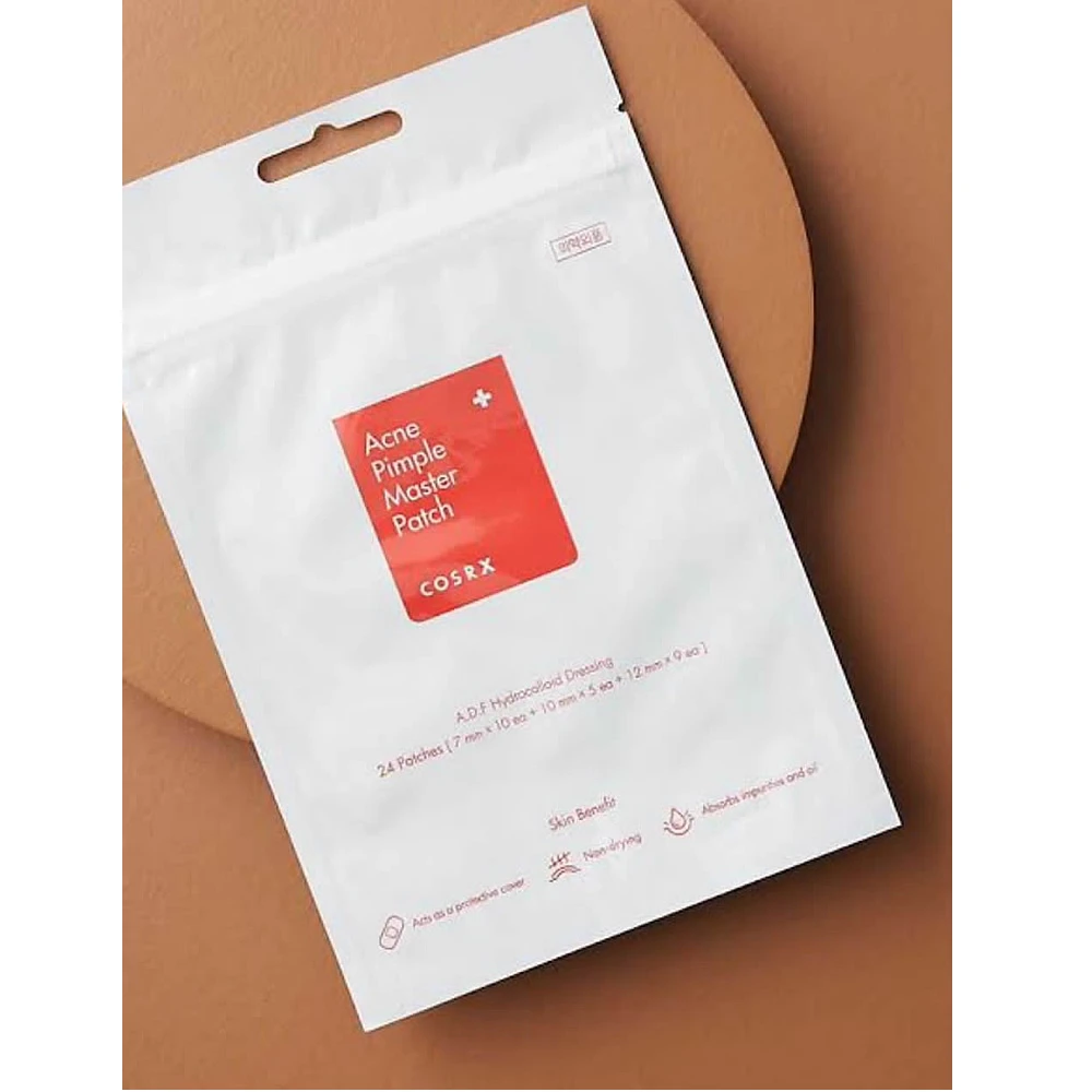 The COSRX Acne Pimple Master Patch is a fast-acting, hydrocolloid patch designed to heal pimples, whiteheads, and blemishes while protecting them from dirt, bacteria, and picking.