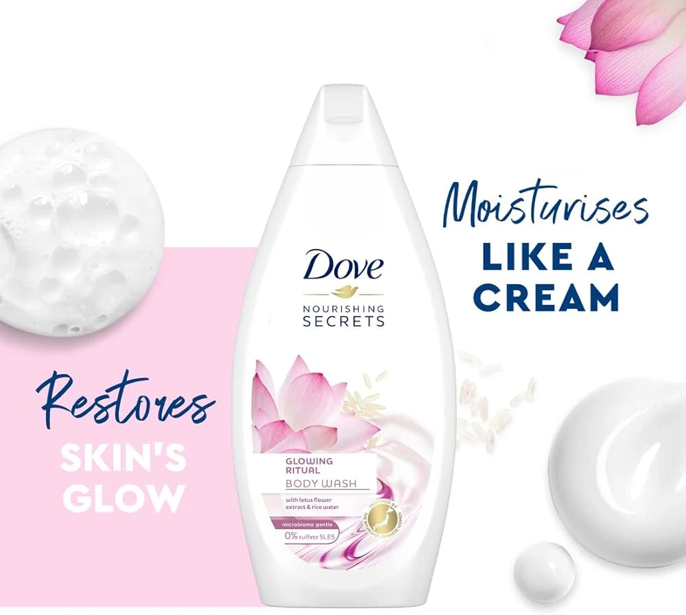 Illuminate your skin with Dove Glowing Rice Water & Lotus Water Body Wash, a luxurious formula that cleanses, hydrates, and enhances your natural radiance.