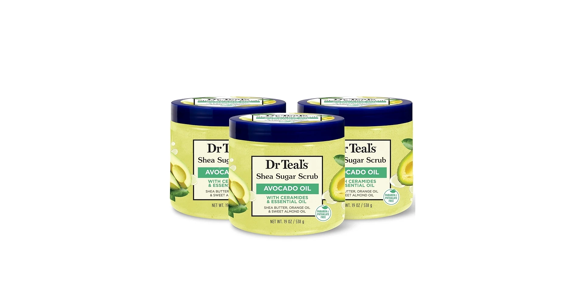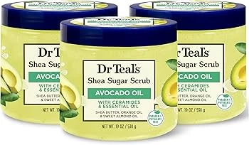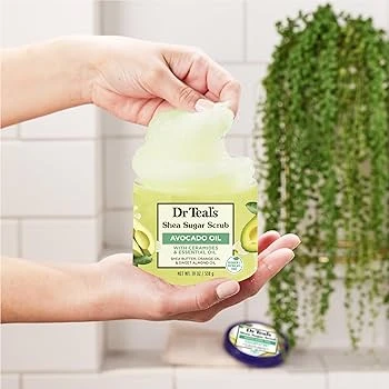 Dr Teal’s Shea Sugar Scrub Avocado is a luxurious exfoliating treatment infused with pure Epsom salt, shea butter, and avocado oil to deeply nourish and smooth the skin.