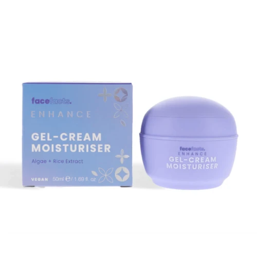 Face Facts Enhance Gel-Cream Moisturiser is a light, refreshing daily moisturizer designed to deeply hydrate and revive tired skin without weighing it down.