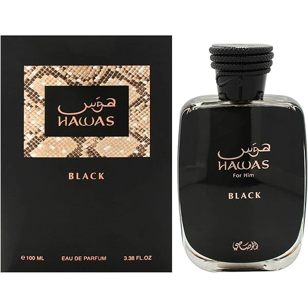 Rasasi Hawas Black Eau de Parfum is a daring, captivating fragrance designed for confident men. It opens with a vibrant blend of spicy notes and fresh citrus, unfolding into a heart of aromatic woods, lavender, and pepper, and rests on a deep, seductive base of musk, amber, and patchouli.