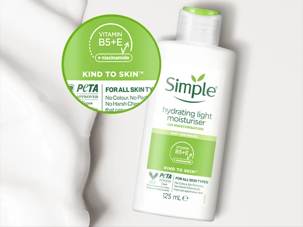 The Simple Kind to Skin Hydrating Light Moisturizer provides instant, long-lasting hydration while maintaining a soft, balanced complexion. Enriched with Pro-Vitamin B5, Vitamin E, and Glycerin, this fast-absorbing formula keeps your skin smooth and refreshed without clogging pores or leaving a greasy residue.